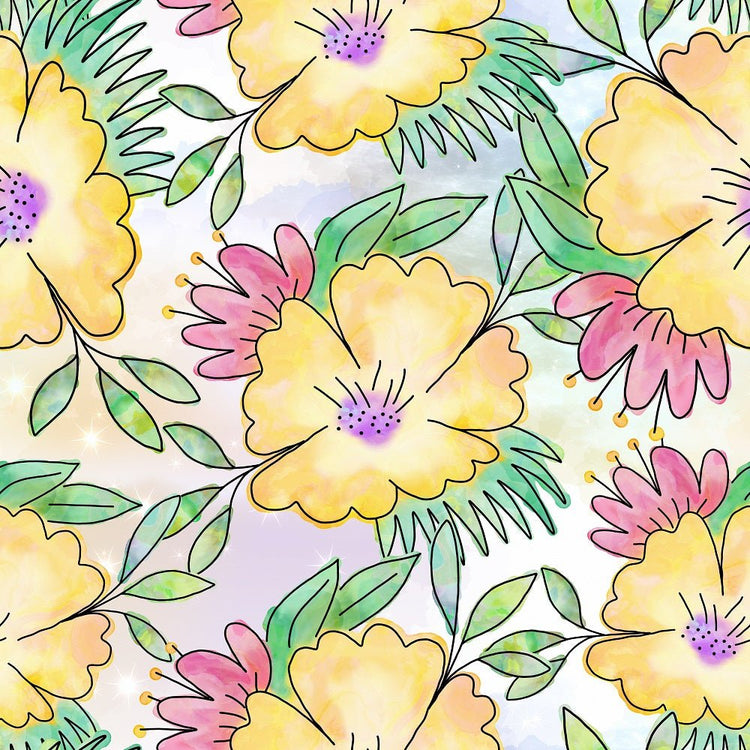 Watercolor Doodle Bouquet #3 Fabric Details
