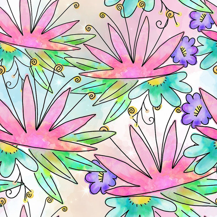 Watercolor Doodle Bouquet #5 Fabric Details