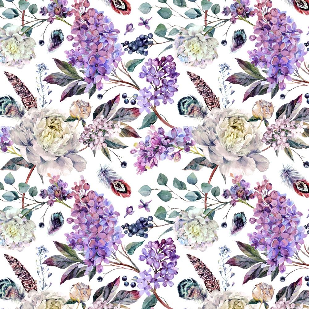 Watercolor Floral Boho Peonies & Lilac Fabric Details