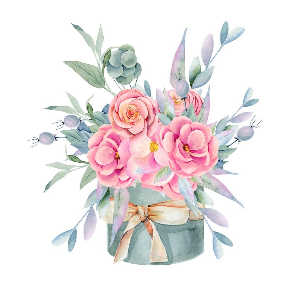 Watercolor Floral Gift Box Variation #3 Fabric Panel