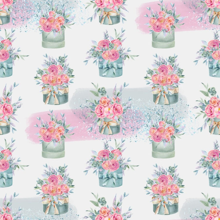 The Gray Watercolor Floral Gift Boxes Fabric is part of the Floral Gift Boxes Fabric Collection is printed by Sew Creative Fabrics. Digitally Printed on 100% cotton.