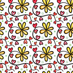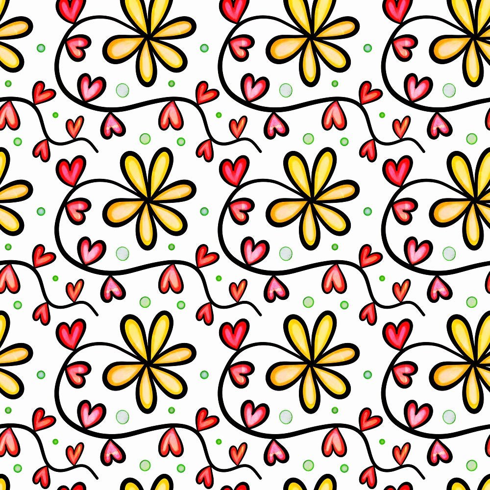 Watercolor Floral Hearts Collage #1 Fabric Details