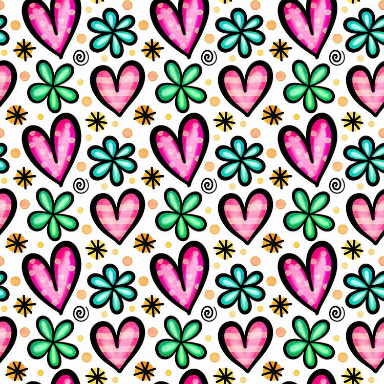 Watercolor Floral Hearts Collage #10 Fabric Details