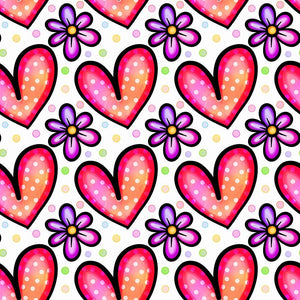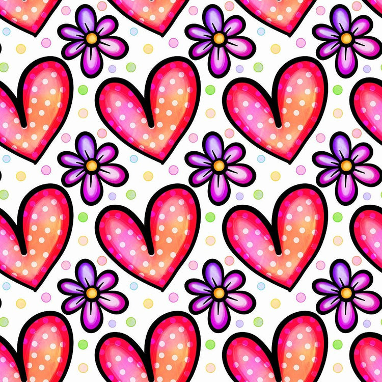 Watercolor Floral Hearts Collage #12 Fabric Details
