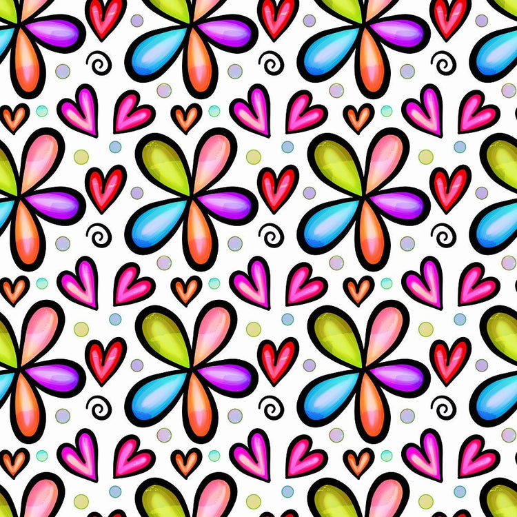 Watercolor Floral Hearts Collage #5 Fabric Details