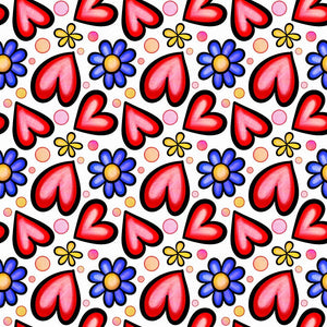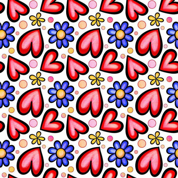 Watercolor Floral Hearts Collage #7 Fabric Details