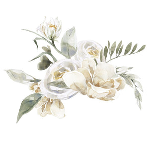 The White Watercolor Fluffy Animals Floral Bouquet Fabric Panel is part of the Fluffy Animals on the Farm Fabric Collection printed by Sewing Parts Online. Digitally Printed on 100% cotton. The fabric panel is available in 6 different sizes:
