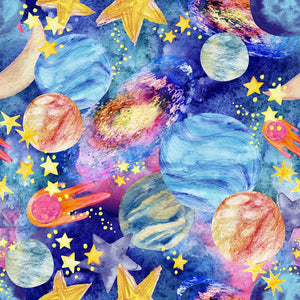 The Watercolor Galaxy Constellations 2 Fabric is part of the Watercolor Galaxy Fabric Collection printed by Sew Creative Fabrics. Digitally Printed on 100% cotton.