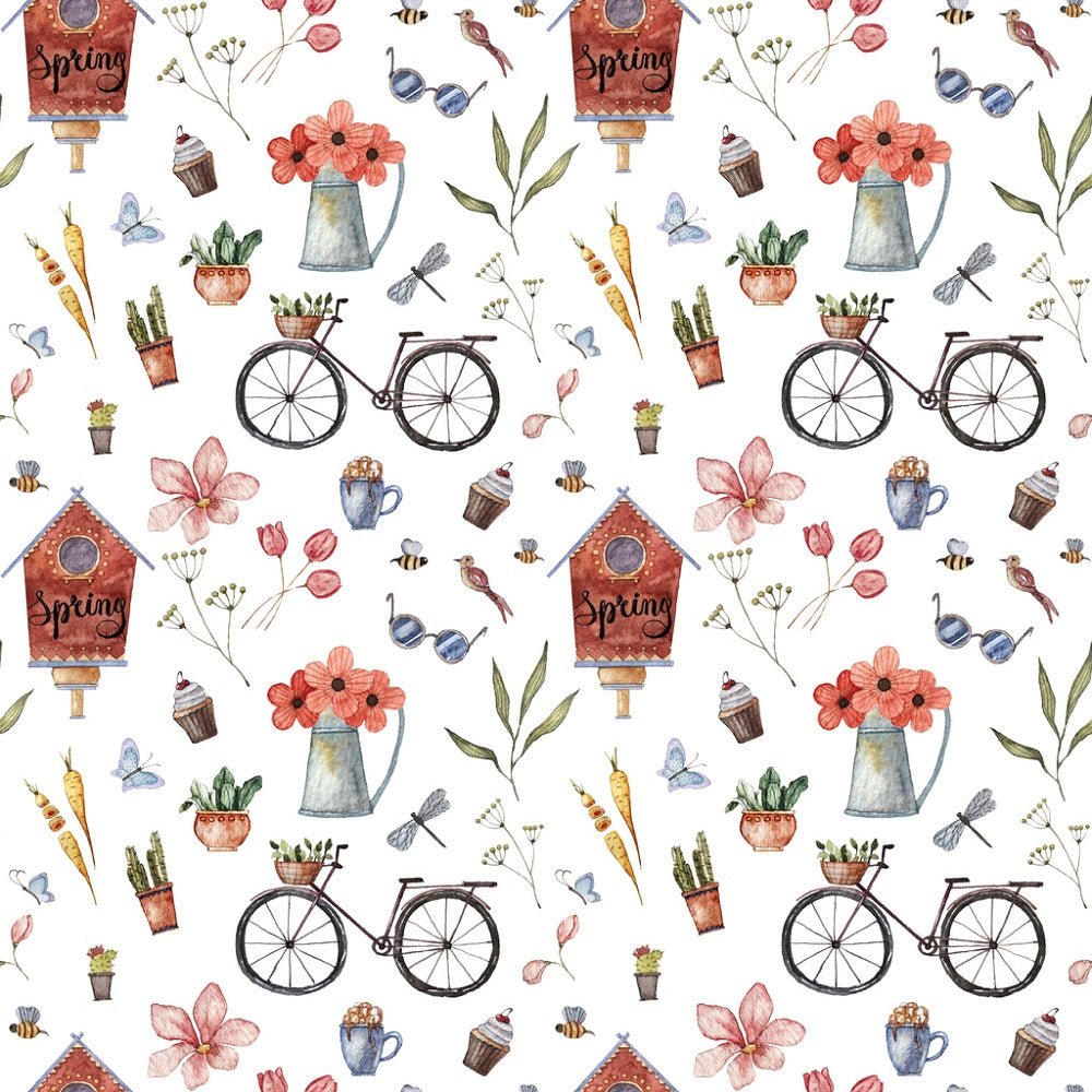 The Watercolor Gardening Elements Fabric is part of the Gardening Fabric Collection printed by Sew Creative Fabrics. Digitally Printed on 100% cotton.
