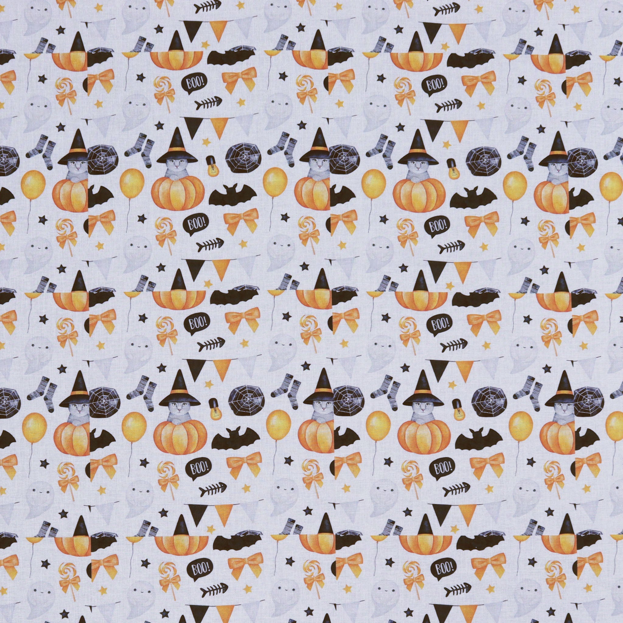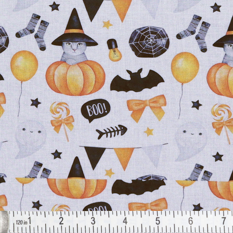 Watercolor Ghosts & Cats Fabric Details