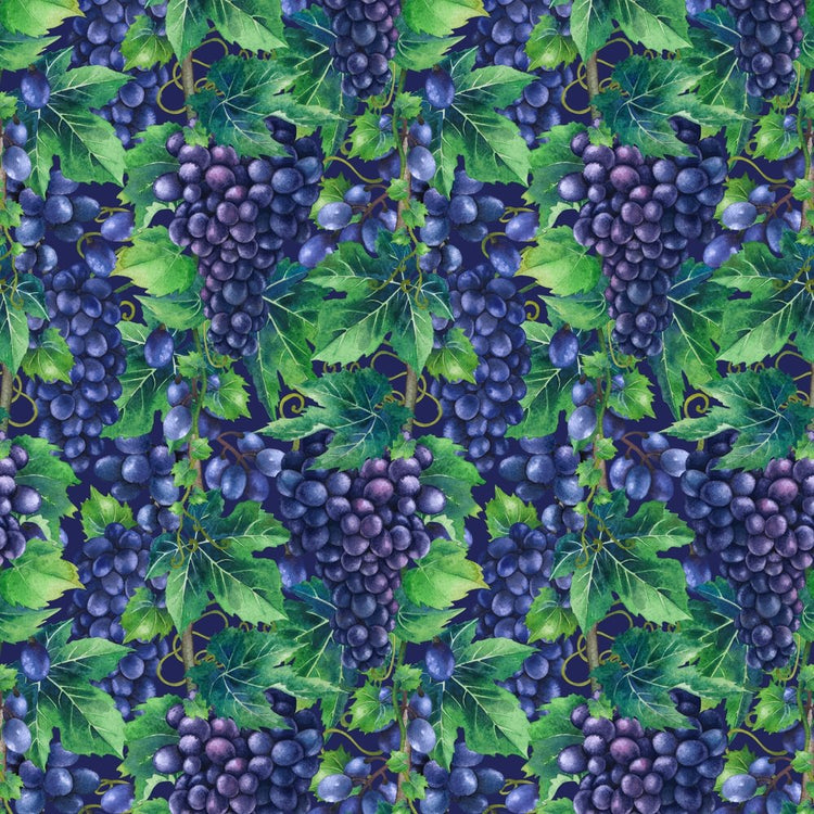 The Watercolor Grape Bunches Fabric is part of the Food and Beverage Collection printed by Sew Creative Fabrics. Digitally Printed on 100% cotton.