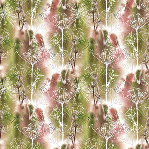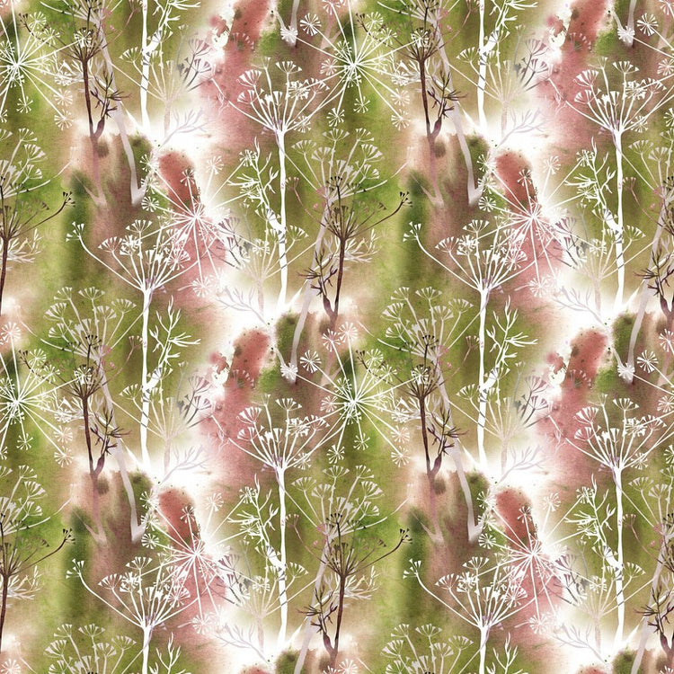 Watercolor Grunge Dill Flowers Fabric - Green/Pink Details