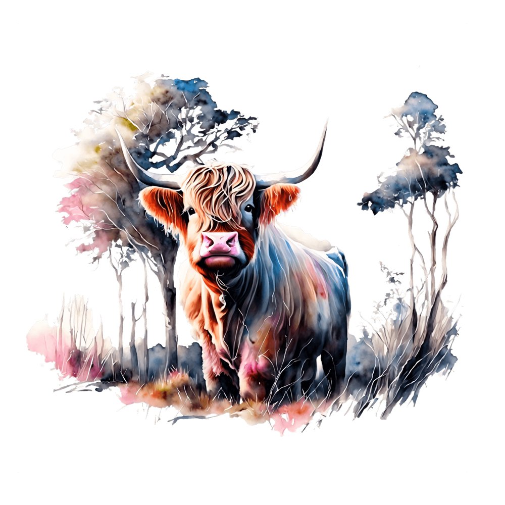 Watercolor Highland Cow Portrait Fabric Panel Details