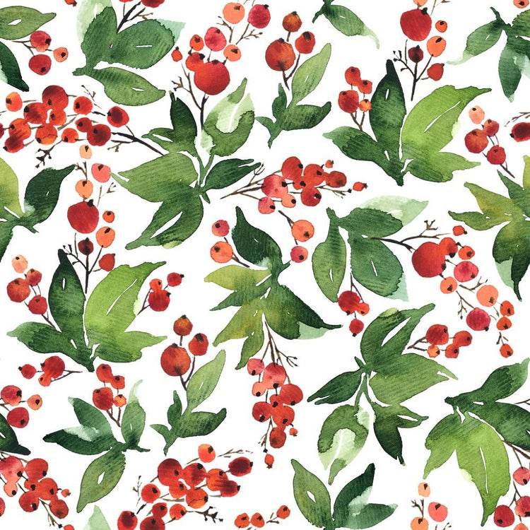 The White Watercolor Holly & Berries Fabric is a part of the Watercolor Christmas Fabric Collection printed by Sew Creative Fabrics. Digitally Printed on 100% cotton.