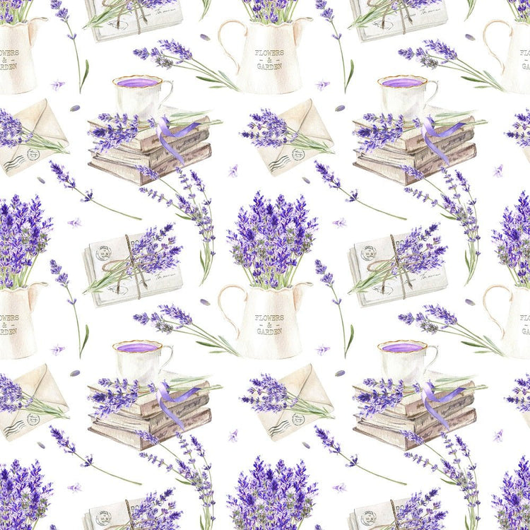 The Watercolor Lavender Books Fabric is part of the Watercolor Lavender Fabric Collection printed by Sew Creative Fabrics. Digitally Printed on 100% cotton.