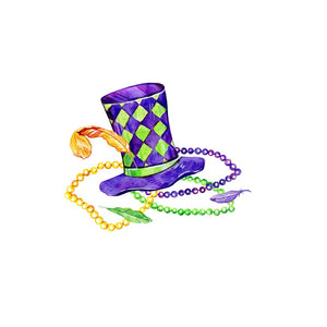 Watercolor Mardi Gras Hat Fabric Panel Details