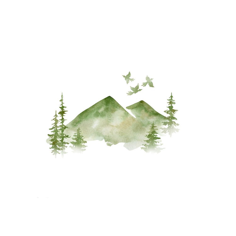 Watercolor Mountain Peaks Fabric Panel - Green Details