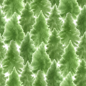 Watercolor Packed Fir Trees Fabric - Green Details