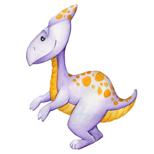 The Watercolor Parasaurolophus Fabric Panel is part of the Cute Dinosaur Fabric Collection printed by Sew Creative Fabrics. This panel is digitally printed on 100% cotton. This fabric panel is available in 6 different sizes: