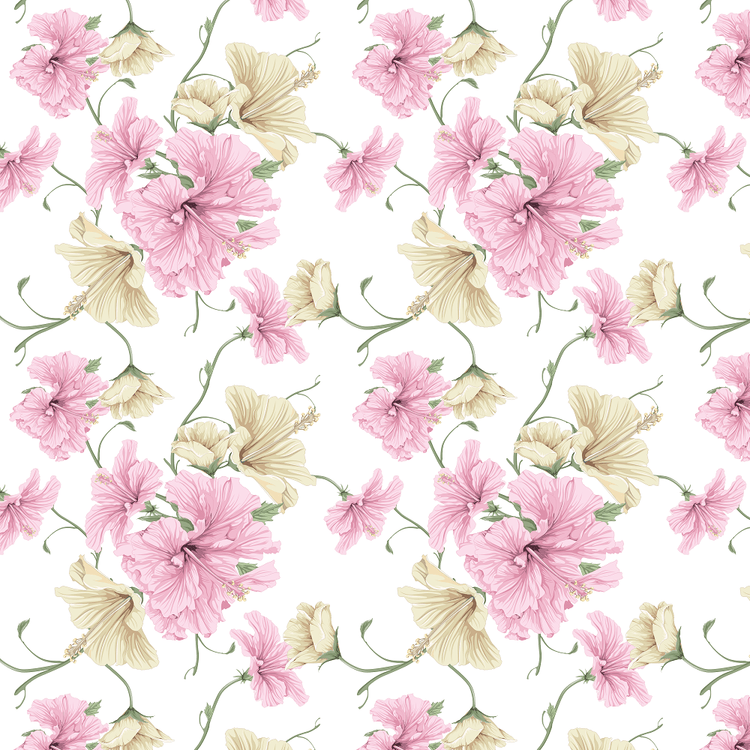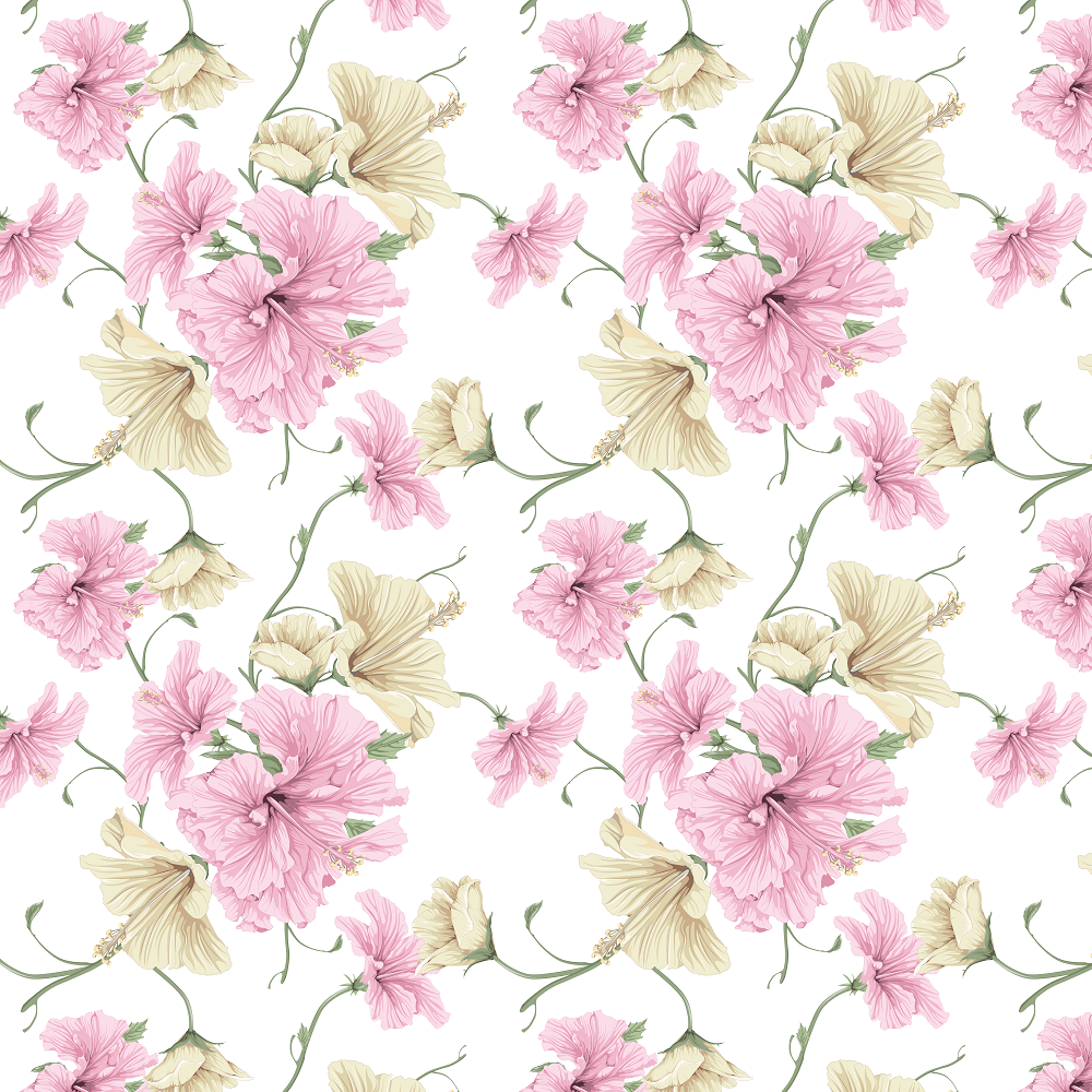 Watercolor Pastel Hibiscus Flowers Fabric Details
