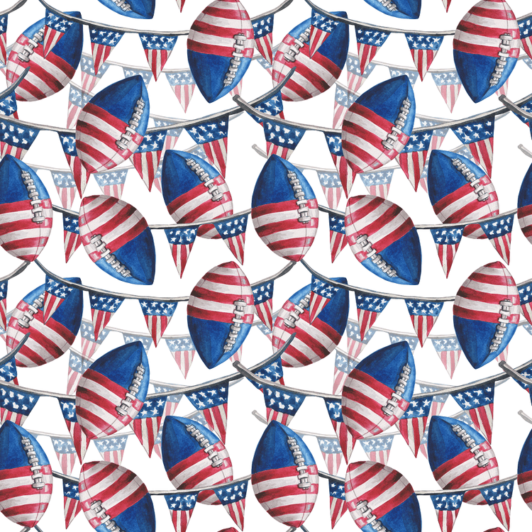 The Watercolor Patriotic Football Fabric is a part of Watercolor 4th of July Fabric Collection printed by Sew Creative Fabrics. Digitally Printed on 100% cotton.
