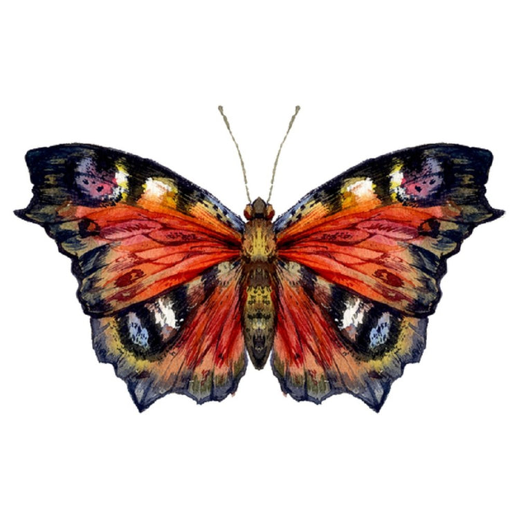 The Red Watercolor Peacock Butterfly Fabric Panel is part of the Watercolor Wildlife Fabric Collection printed by Sewing Parts Online. This panel is digitally printed on 100% cotton. The Red Watercolor Peacock Butterfly Fabric Panel is available in 5 different sizes: