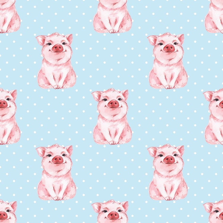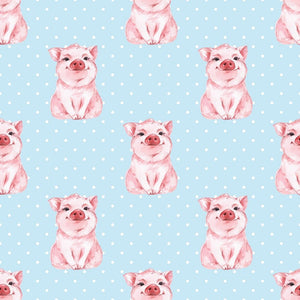 The Blue Watercolor Pigs on Dots Fabric is part of the Aquarelle Florals Fabric Collection printed by Sew Creative Fabrics. Digitally Printed on 100% cotton.