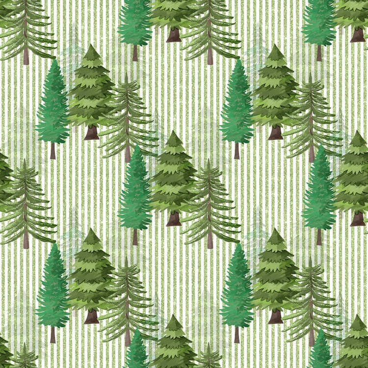The White Watercolor Pine Trees on Stripes Fabric is part of the Watercolor Pine Trees Fabric Collection printed by Sew Creative Fabrics. Digitally Printed on 100% cotton.