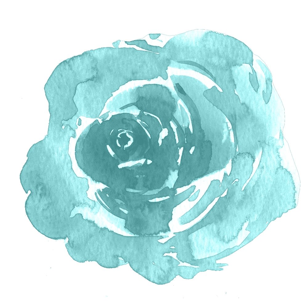 Watercolor Rose Fabric Panel - Blue