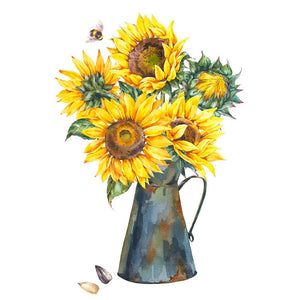 Watercolor Rustic Farmhouse Sunflower Metal Can Fabric Panel Details