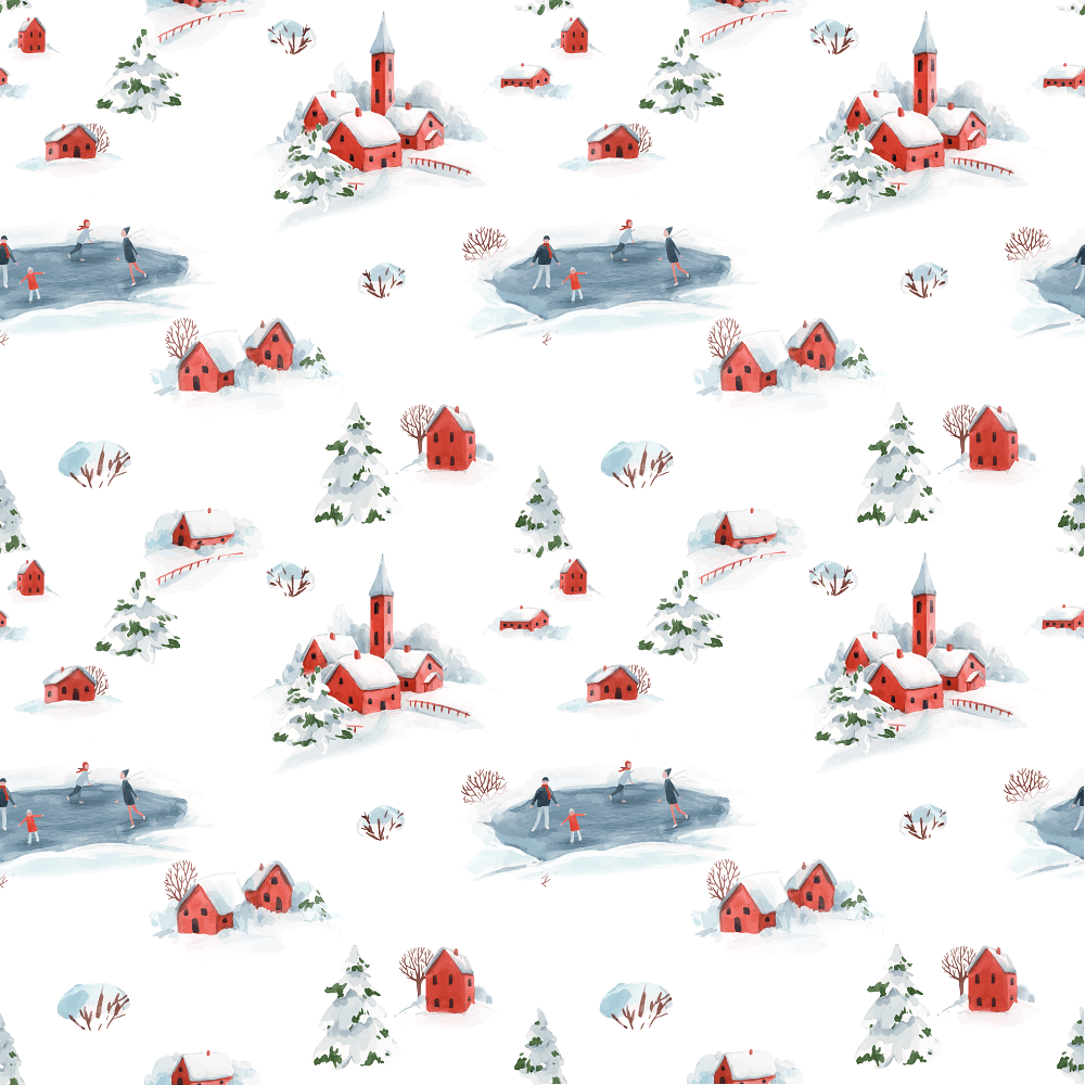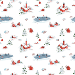 The Watercolor Snowy Town Fabric is a part of the Watercolor Christmas Town Fabric Collection printed by Sew Creative Fabrics. Digitally Printed on 100% cotton and measures 42-43" wide.