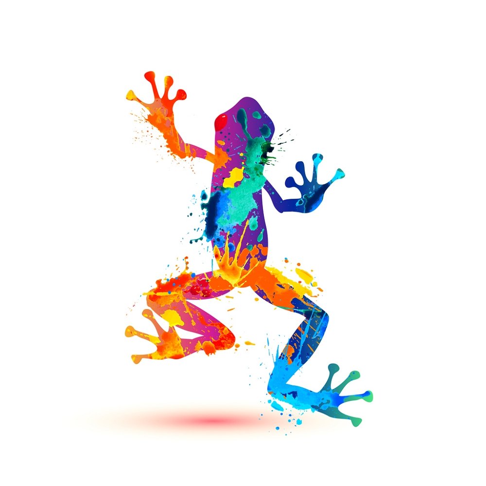 Watercolor Splash Paint Frog Fabric Panel - Multi Details
