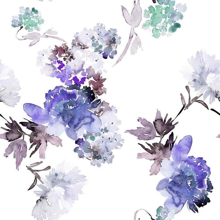 Watercolor Summer Floral Fabric - Purple