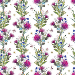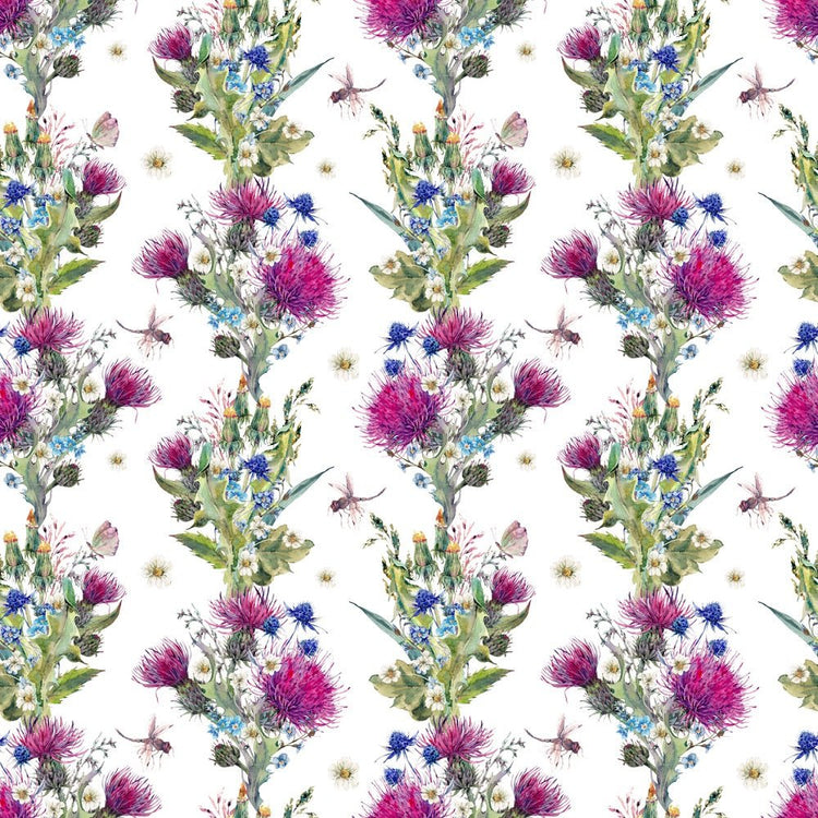 Watercolor Thistles, Wildflowers, Insects Fabric Details