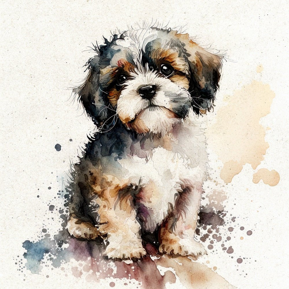The Watercolor Tibetan Terrier Portrait Fabric Panel is part of the Watercolor Puppy Portraits Fabric Collection printed by Sewing Parts Online. Digitally Printed on 100% cotton. This panel is available in 6 different sizes: