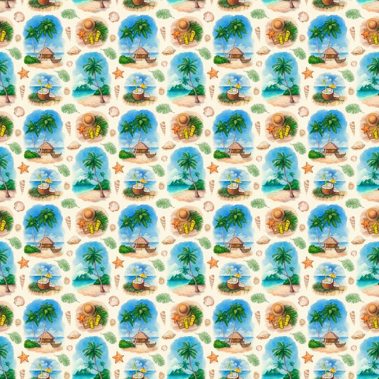 The Watercolor Tropical Paradise Fabric is a part of the Beach Fabric Collection printed by Sew Creative Fabrics. Digitally Printed on 100% cotton and measures 43-45" wide. Sew Creative Fabrics prints are only available through Sewing Parts Online, not sold in stores or anywhere else online. * Proudly Manufactured in Dickson, Tennessee USA! *