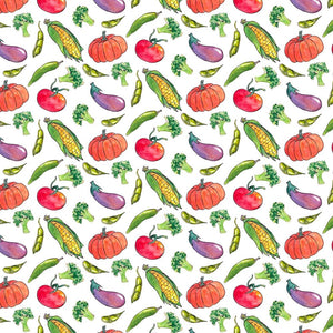 The Watercolor Veggies Fabric is a part of the Food & Beverage Fabric Collection printed by Sew Creative Fabrics. Digitally Printed on 100% cotton and measures 42-43" wide.