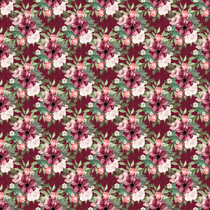 The Burgundy Watercolor Wildflower Clusters Fabric is part of the Champagne & Burgundy Floral Fabric Collection printed by Sew Creative Fabrics. Digitally Printed on 100% cotton.