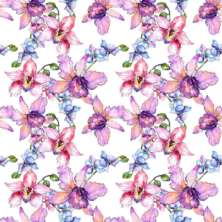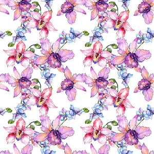 The Watercolor Wildflower Orchid 3 Fabric is part of the Aquarelle Florals Fabric Collection printed by Sew Creative Fabrics. Digitally Printed on 100% cotton.