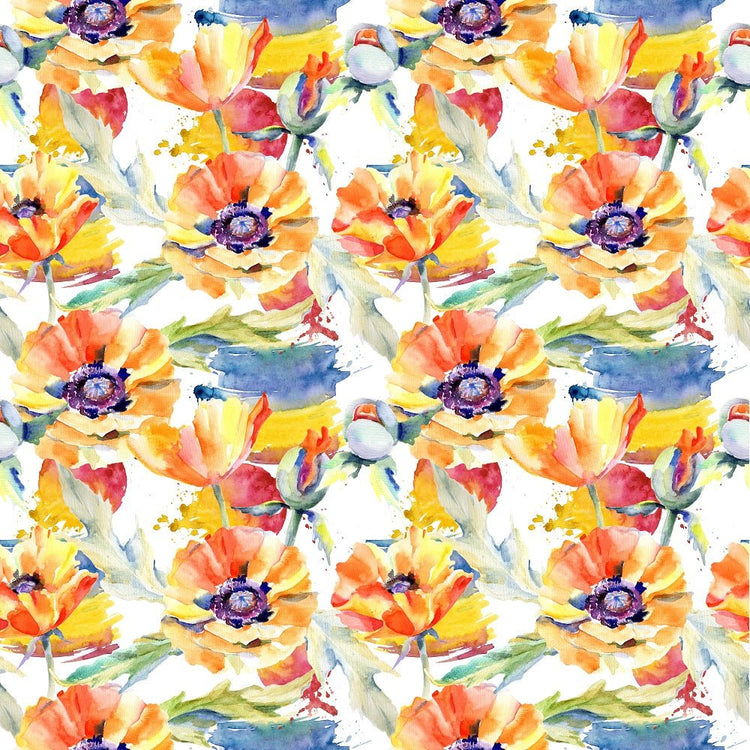 The Watercolor Wildflower Poppy Fabric is part of the Aquarelle Florals Fabric Collection printed by Sew Creative Fabrics. Digitally Printed on 100% cotton.