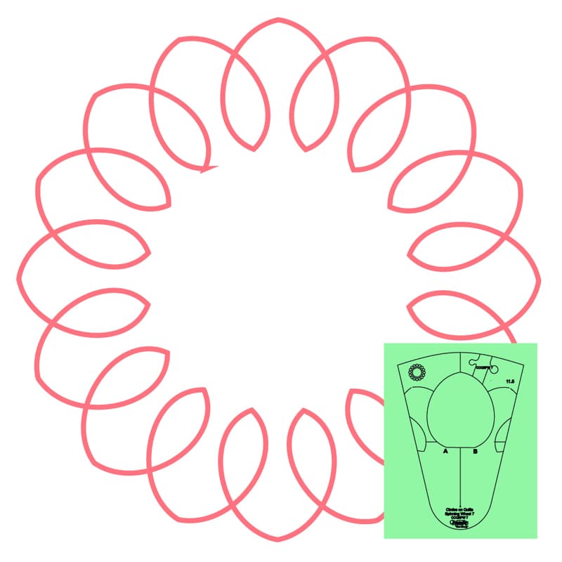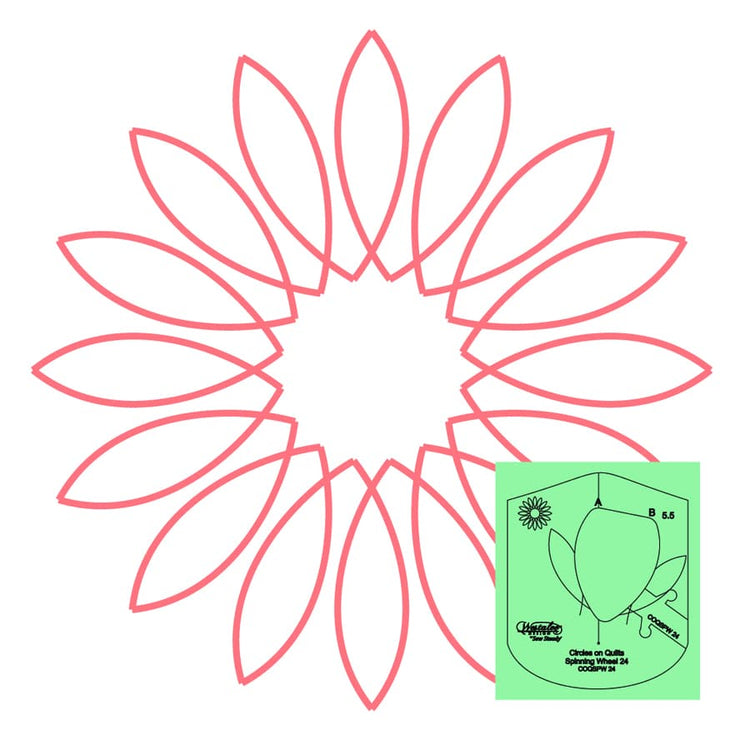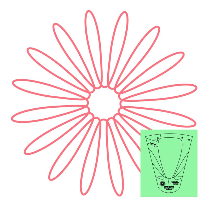 The Westalee Design Circles on Quilts Spinning Wheel Templates create smooth infinite circular designs. Please note that each template's size finishes between a 5-1/2" to 11-1/2" stitched pattern. Make perfectly symmetrical designs each time using the pin location system. The Westalee Design Circles on Quilts Spinning Wheel Template is available for high-shank, low-shank, and longarm machines.