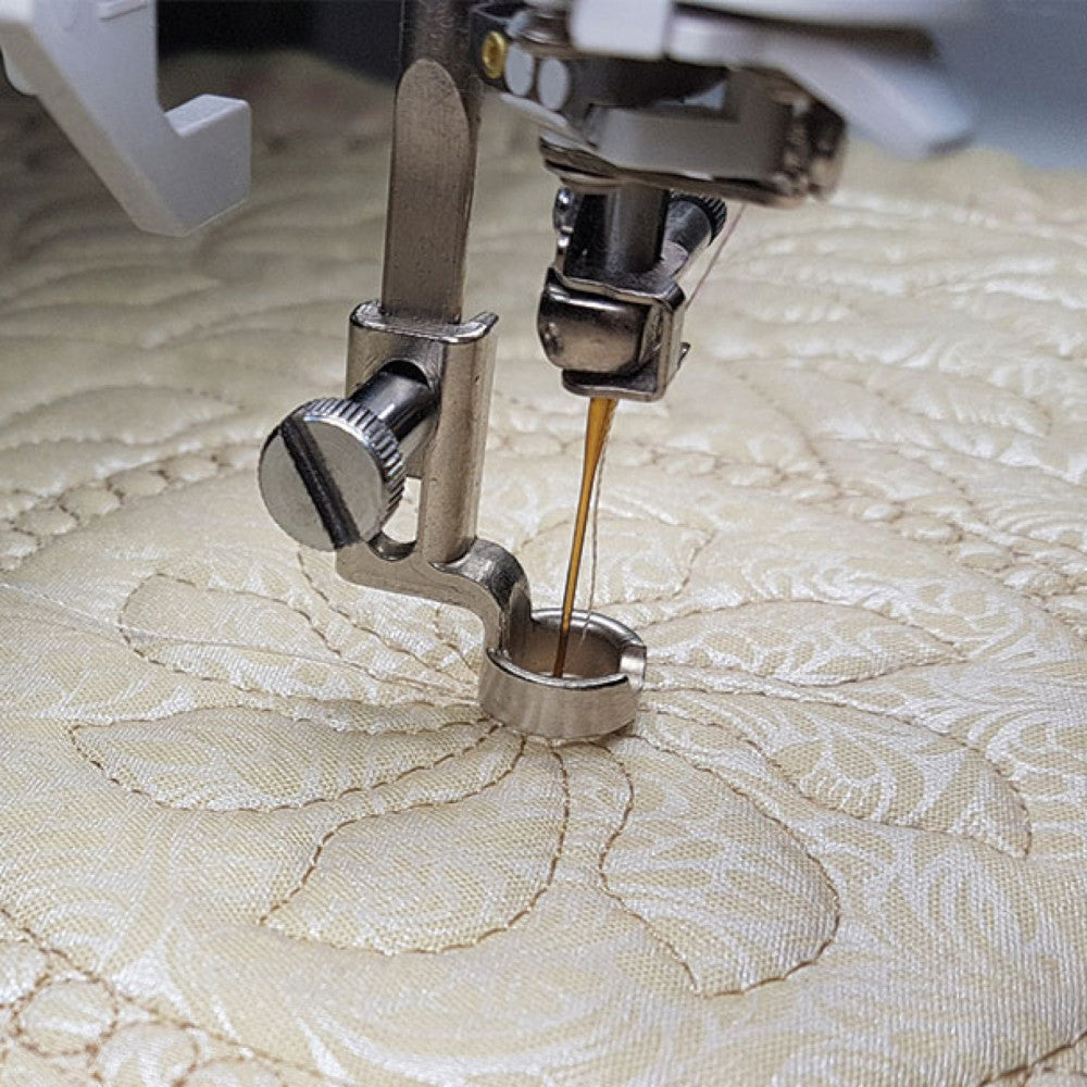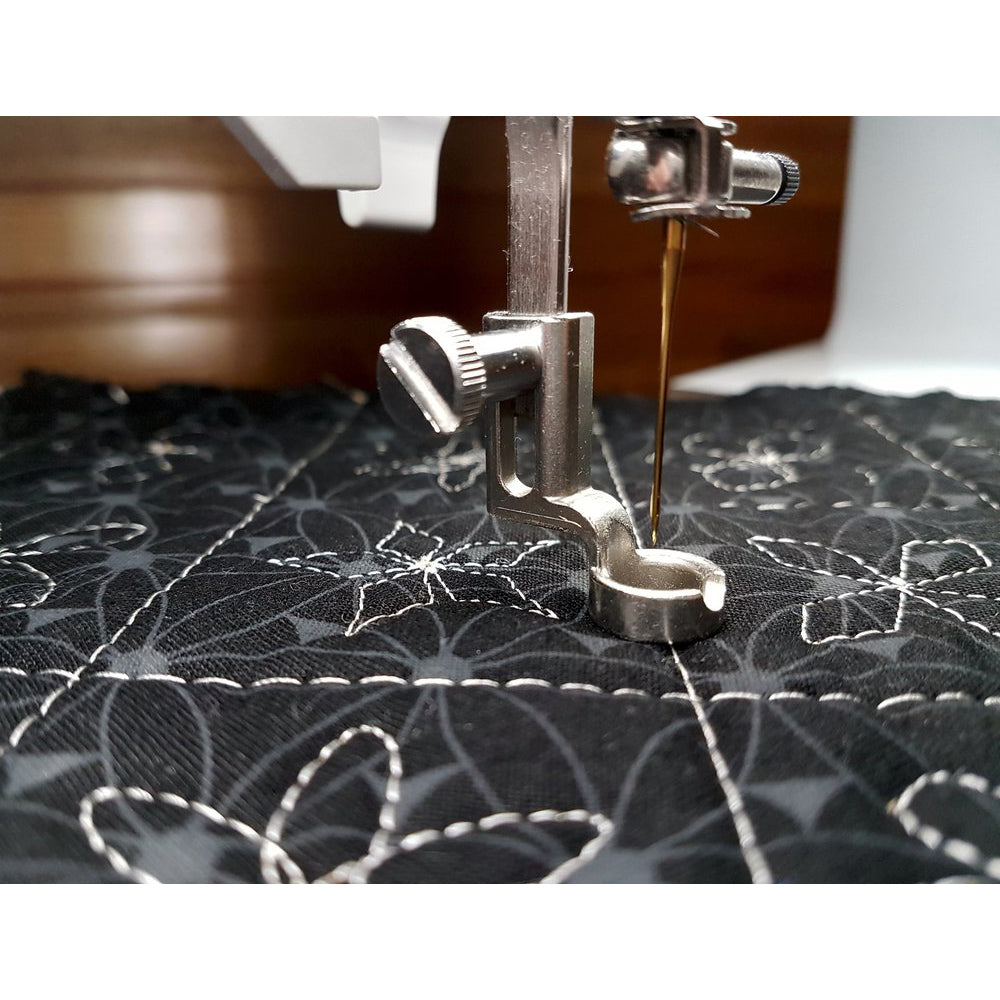 Westalee Design's Ruler Foot was one of the first feet explicitly designed to be used on almost all domestic sewing machines, regardless of age or make. Quilt intricate designs using this foot when combined with Westalee's template rulers. Choose from three shank types, low, medium, or high. If you need help determining the difference between low shank and high shank, lower your foot and then measure the height of the center of the hole for the screw to the needle plate. If it measures 1/2" it is low shank and if it measures 1" it is high shank. Please contact us at (888) 824-1192 if you have any question or concerns, or check out this handy Ruler Foot & Template Size Guide here.