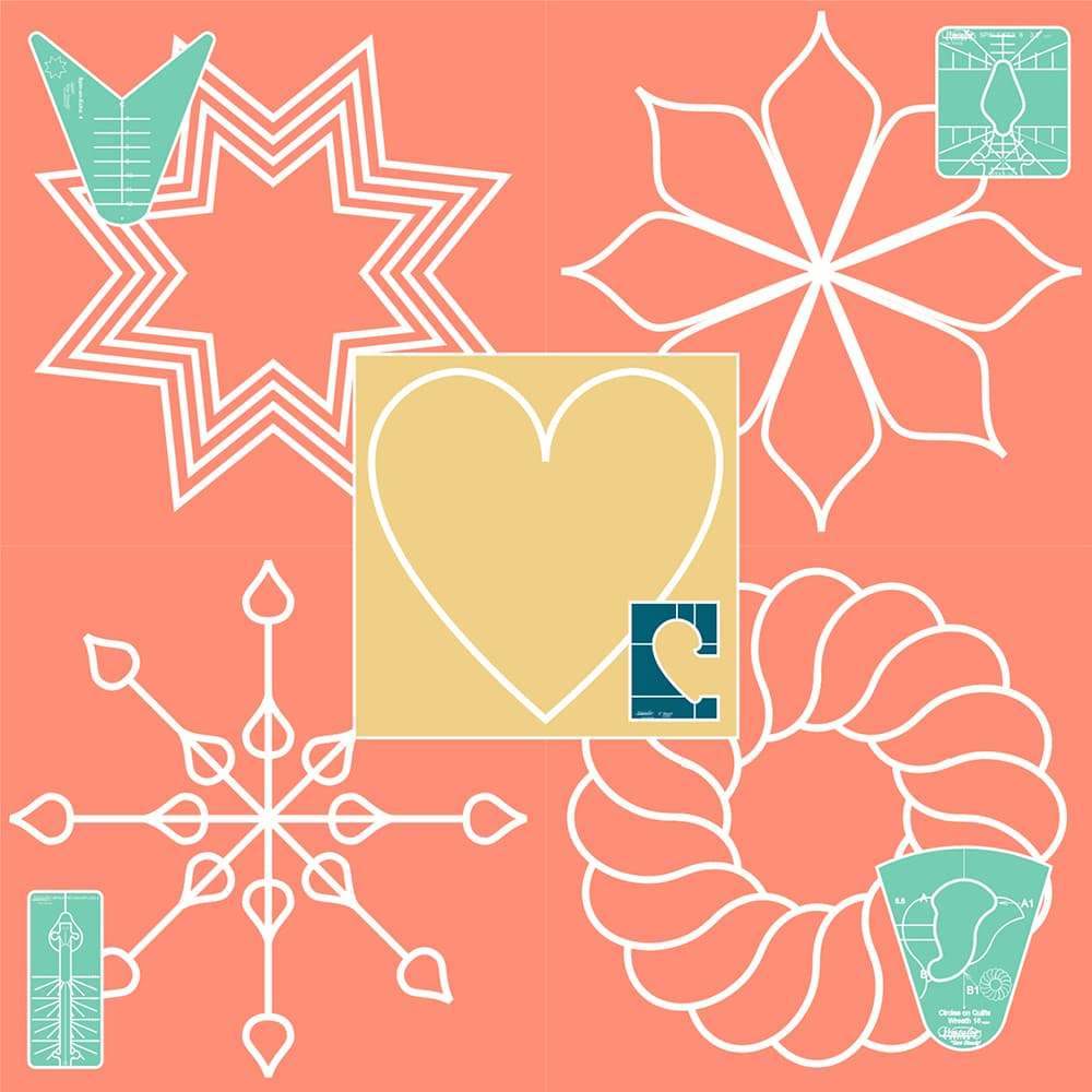 For all those winter projects that need a little something extra, check out Westalee's Winter Collection Template Ruler Set. This five-piece set is sure to inspire you with its creative possibilities. Please note that these acrylic templates are specific to the type of shank your machine uses: low shank, high shank, or longarm. Don't hesitate to get in touch with us at (888) 824-1192 if you have any questions or concerns, or check out this handy Ruler Foot & Template Size Guide here.