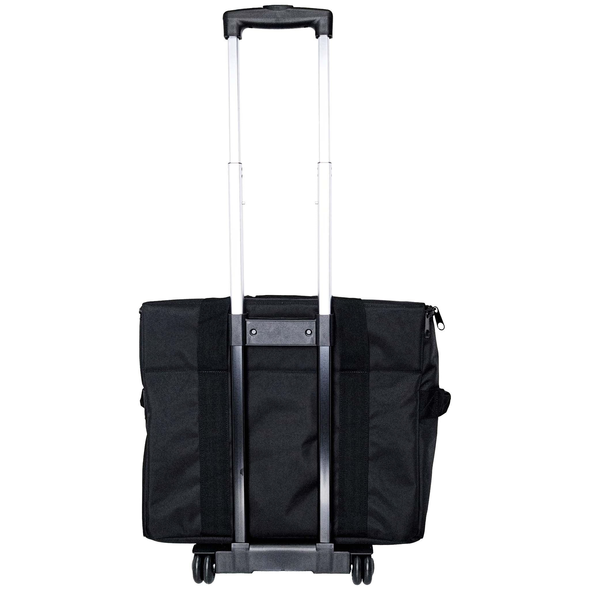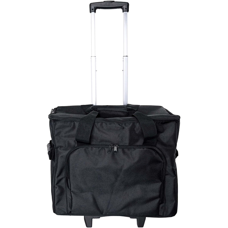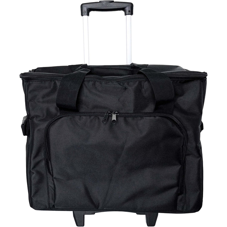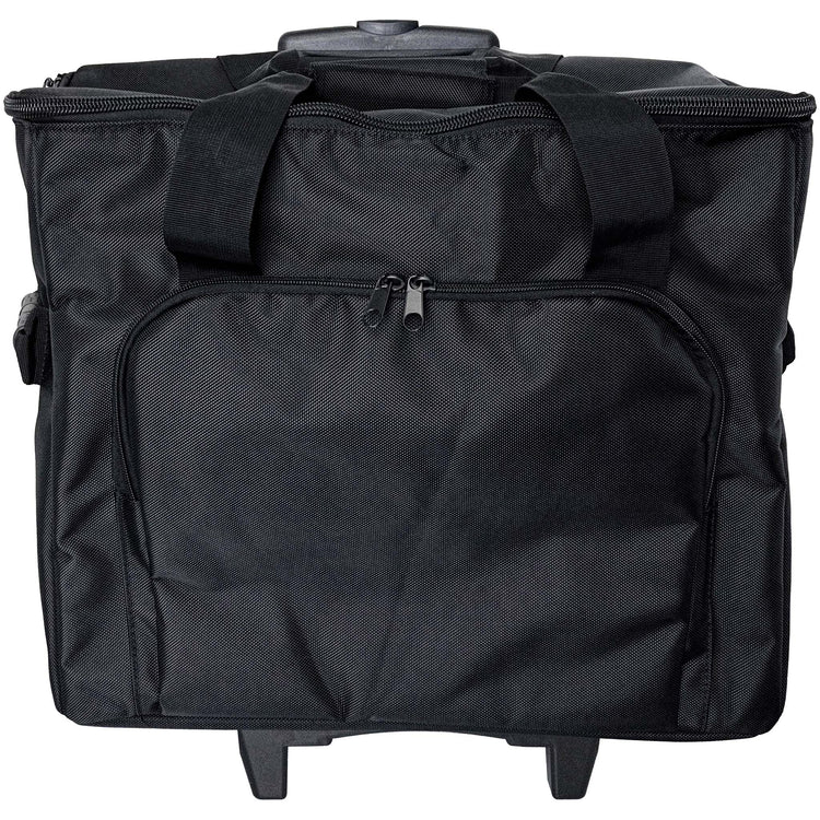 Built to fit all Janome machines (except the MB-4), this durable wheeled sewing machine case makes transporting your machine simple and secure. The case measures 20" L x 9" W x 15.5" H, and with the handle fully extended, it reaches 36" high for easy rolling. A roomy front pocket provides convenient storage for scissors, thread, and other essential notions, keeping everything you need for sewing projects neatly organized and ready to go.
