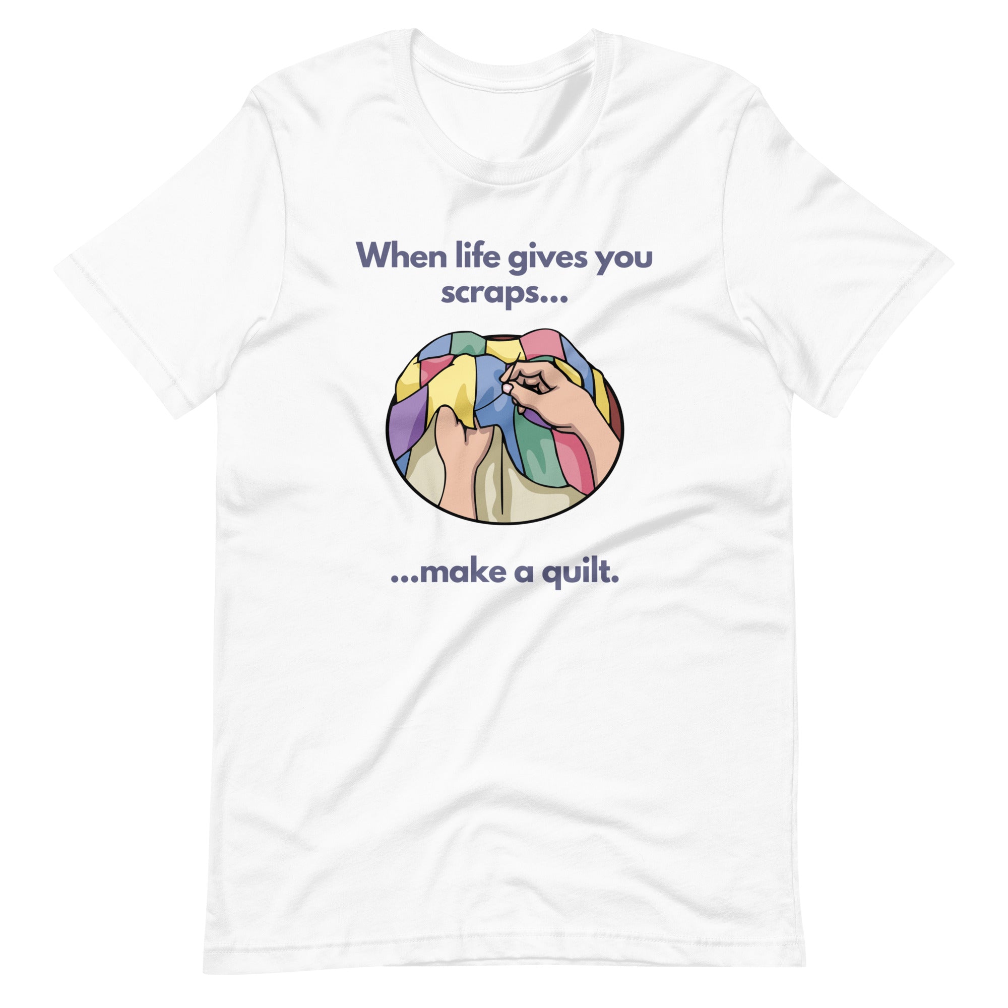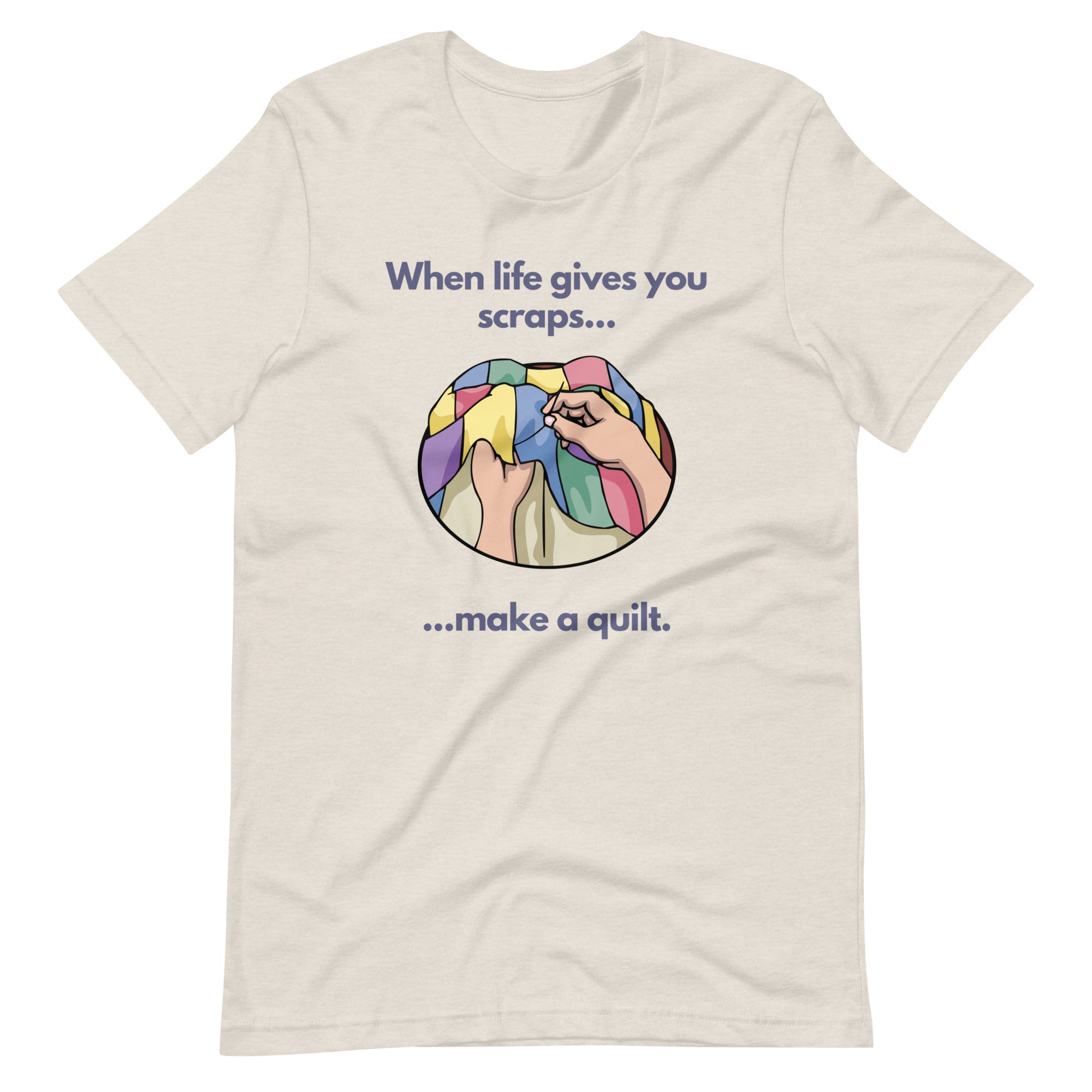 Turn life’s leftovers into something beautiful—just like your fabric stash! This heartwarming tee features colorful patchwork art with the inspiring phrase “When life gives you scraps… make a quilt.” It’s a gentle reminder that creativity and resilience go hand in hand, especially when you’ve got a pile of fabric waiting to shine.
