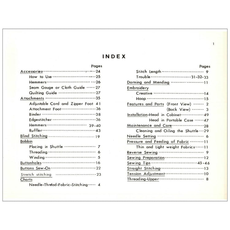 White 499 Sewing Machine Instruction Manual (Model 499) - 54 Pages. Lost your sewing machine's manual? We've got you covered! This instruction manual is the ultimate guide to unlock the full potential of your White 499. No more confusion or frustration—just clear, concise instructions right at your fingertips. What's inside? Everything you need to know from setting up to mastering your sewing machine and all its features.