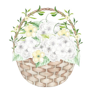 The White Hydrangeas Basket Fabric Panel is part of the White Hydrangeas Fabric Collection printed by Sew Creative Fabrics. Digitally Printed on 100% cotton. This fabric panel is available in 6 different sizes: