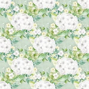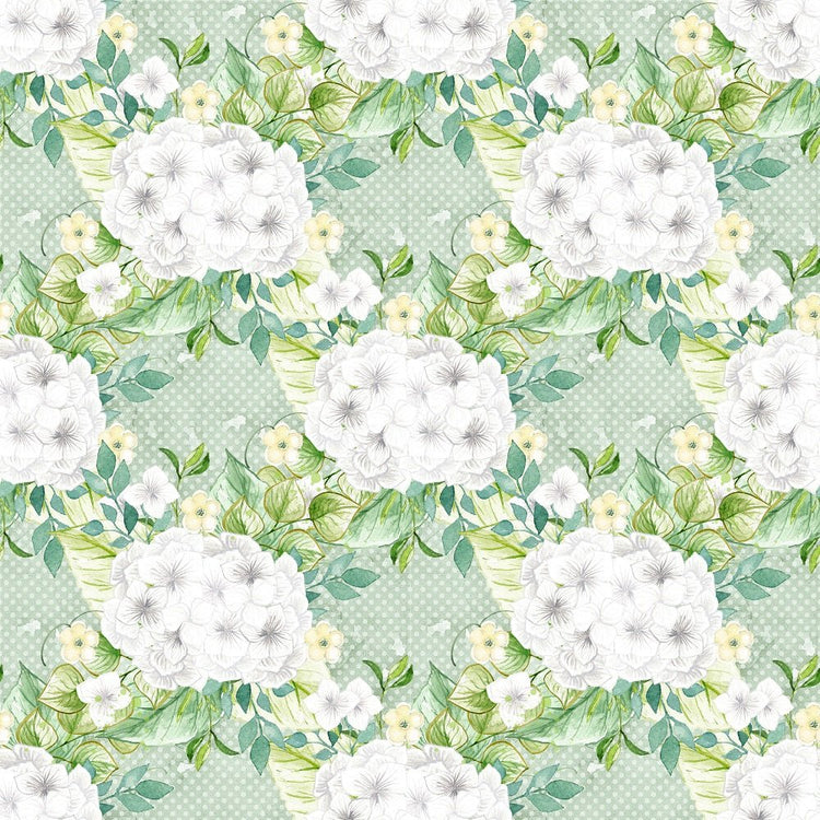 The White Hydrangeas Bouquets on Green Dots Fabric is part of the White Hydrangeas Fabric Collection printed by Sew Creative Fabrics. Digitally Printed on 100% cotton.