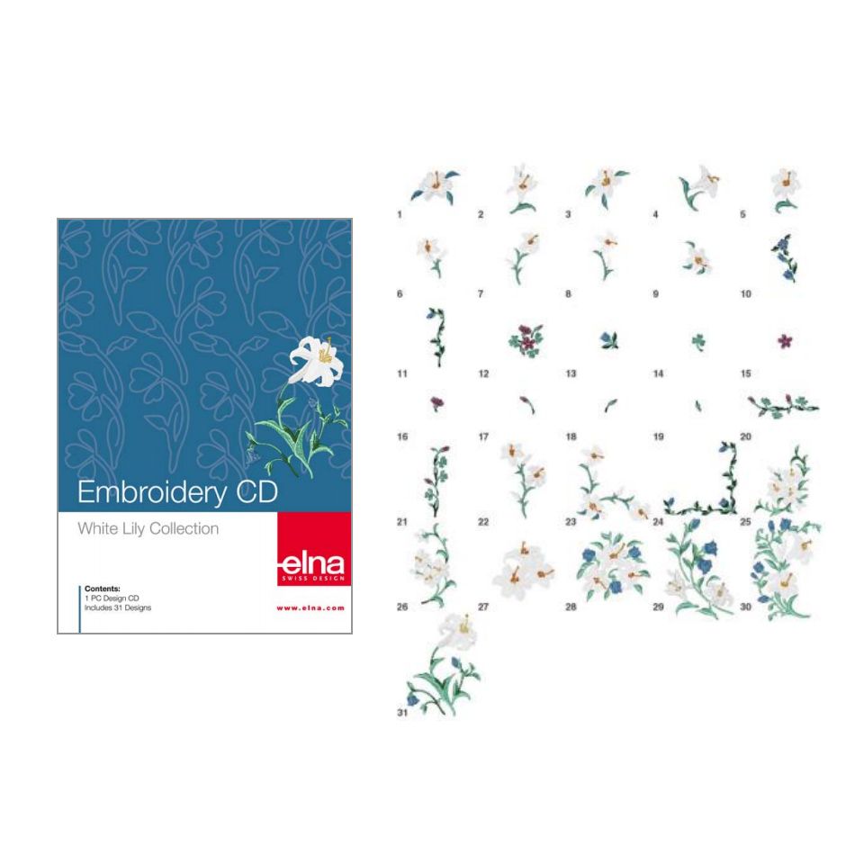 White Lilly Embroidery Collection CD, Elna #253448004 Details
