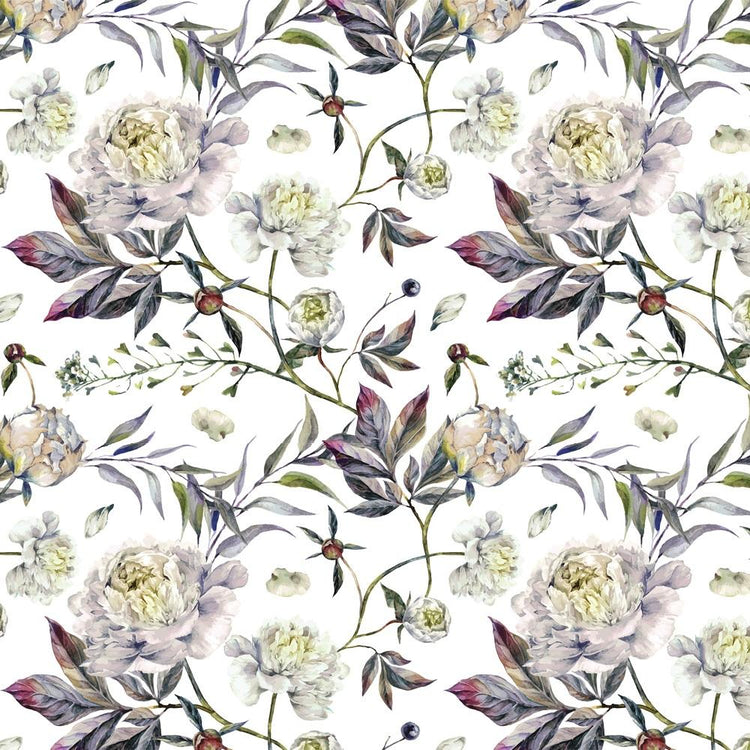 The White Watercolor Peonies Fabric is part of the Peony Symphony Fabric Collection printed by Sew Creative Fabrics. Digitally Printed on 100% cotton.